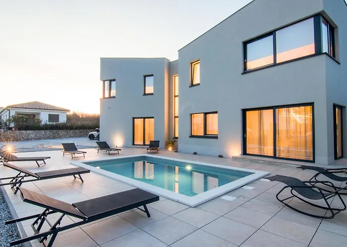 La casa vacanze si trova a 10 minuti in auto dalla Pazza della città di Krk e a circa 15 minuti in auto il Castello Frangipani. Situata a 3,1 km dalla Cattedrale dell'Assunzione della Beata Vergine Maria, questa villa è una destinazione popolare sia per i fedeli che per i turisti.
